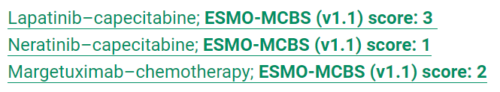 - در خطوط بعدی درمان، لاپاتینیب یک گزینه درمانی مبتنی بر شواهد است که ترجیحاً به صورت ترکیبی مورد استفاده قرار می گیرد (مثلاً با کپسیتابین، تراستوزوماب یا ET).