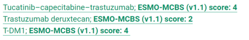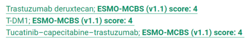 - پس از پیشرفت در حضور تاکسان و تراستوزوماب، در مواردی است که تراستوزوماب دروکستکان در دسترس نیست، T-DM1 میتواند یک گزینه درمانی خط دوم باشد.